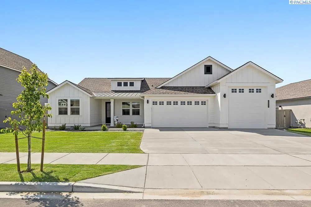 MLS# 278963 Farmhouse Charm Meets Modern Luxury in Quail Ridge at Horn Rapids! Welcome to Lot 17, Phase III—located in a premier Pahlisch Homes community offering resort-style amenities including a sparkling pool, clubhouse, and gym. This beautifully designed Malone Farmhouse floor plan offers 2,411 sq. ft. of thoughtfully crafted living space. The open great room features soaring ceilings, expansive windows, and a cozy fireplace flanked by floating shelves and custom cabinetry—perfect for relaxing or entertaining. The chef-inspired kitchen is equipped with stainless steel appliances, quartz countertops, a walk-in pantry, and elegant finishes that blend style and function. The primary suite is privately situated, creating a serene retreat, while a versatile 4th bedroom or den offers added flexibility. Enjoy the convenience of a 3-car garage with an extended third bay and 11-ft door—great for extra storage or larger vehicles. Step outside to a spacious covered patio, fully enclosed fencing, and professionally landscaped front and back yards—all included! Smart Home features come standard, including a Ring Doorbell, smart deadbolt, thermostat, and garage door openers for peace of mind and everyday ease. *Lot 17, Phase III of Quail Ridge *Open for tours Friday–Tuesday, Please contact to schedule a private tour. *Photos are of actual home.