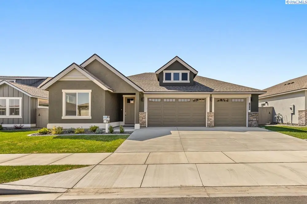 MLS# 281826 Modern Elegance Meets Everyday Comfort in Quail Ridge at Horn Rapids Welcome to Lot 36 in Phase III of the highly desirable Quail Ridge community by Pahlisch Homes—where luxury and lifestyle come together with resort-style amenities including a pool, clubhouse, and fitness center. The popular Chase floor plan blends thoughtful craftsmanship with timeless style. Step into a beautifully designed space featuring floor-to-ceiling hand-textured walls, refined millwork, and elegant architectural details throughout. The gourmet kitchen is a showstopper with sleek quartz countertops, espresso soft-close cabinetry, a full tile backsplash, premium stainless steel appliances (including a gas range), and an expansive island with stylish contrasting grey cabinetry—perfect for hosting and entertaining. A convenient walk-through pantry with direct access from the garage makes unloading groceries a breeze. Soaring vaulted ceilings, a striking tile-surround gas fireplace, and abundant natural light create a welcoming great room ideal for gathering. Outside, the covered patio offers year-round enjoyment and seamlessly extends your living space. Tucked away for privacy, the luxurious primary suite is your personal retreat, featuring a spa-inspired bathroom with a stunning tile shower and a spacious walk-in closet. Enjoy the benefits of Smart Home technology, including a smart thermostat, smart deadbolt, and garage door opener for added convenience and peace of mind. Front yard landscaping and fully enclosed fencing are included! * Lot 36, Phase III of Quail Ridge at Horn Rapids *Open for tours Friday–Tuesday, Please contact to schedule a private tour. *Up to $20,000 Buyer Bonus available when using a Preferred Lender. * Photos are of actual home