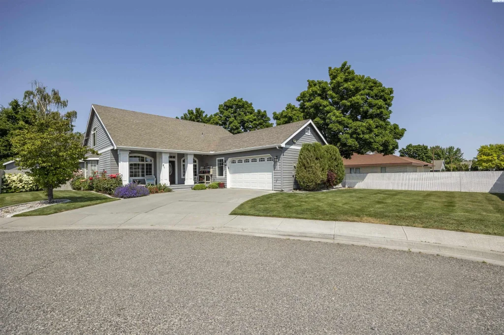 MLS# 284773 Nestled in the heart of West Kennewick, this spacious 1.5 story home is tucked away in a quiet cul-de-sac. A charming covered front porch and meticulously maintained landscaping greet you, offering the perfect place to call home. The home includes 2424 sq ft of living space, with 4 bedrooms and 3 bathrooms. Upon entering, you will be welcomed by vaulted ceilings, warm hardwood floors, and an abundance of natural light that illuminates the interior. The expansive kitchen boasts wood cabinetry, ample counter space, and connects to a large family room with a cozy fireplace, backyard access, and a formal dining area with a bay window and detailed ceiling. The generous primary suite features a vaulted ceiling, exterior access, a spacious closet, and a private bathroom with a dual sink vanity. Storage is plentiful throughout the home, with all bedrooms offering spacious accommodations. The fourth bedroom presents a versatile space that can be utilized as a home gym, TV room, or customized to suit your needs. Additionally, there is a large unfinished area perfect for extra storage. Completing the property is an attached 2-car garage and a detached storage building for all your organizational needs and projects. Situated on a quarter-acre lot, the outdoor living space is an oasis for relaxation and entertainment, complete with a fully fenced backyard, an expansive covered patio, lush mature landscaping, shaded trees, flower gardens, and ample room for children and pets to play. Situated in a prime Kennewick location, this home provides unparalleled access to a wide array of Tri-Cities amenities. From great schools and Sunset Park to nearby shopping, dining options, and effortless highway accessibility via Steptoe for commuters, this property seamlessly combines convenience with comfort.