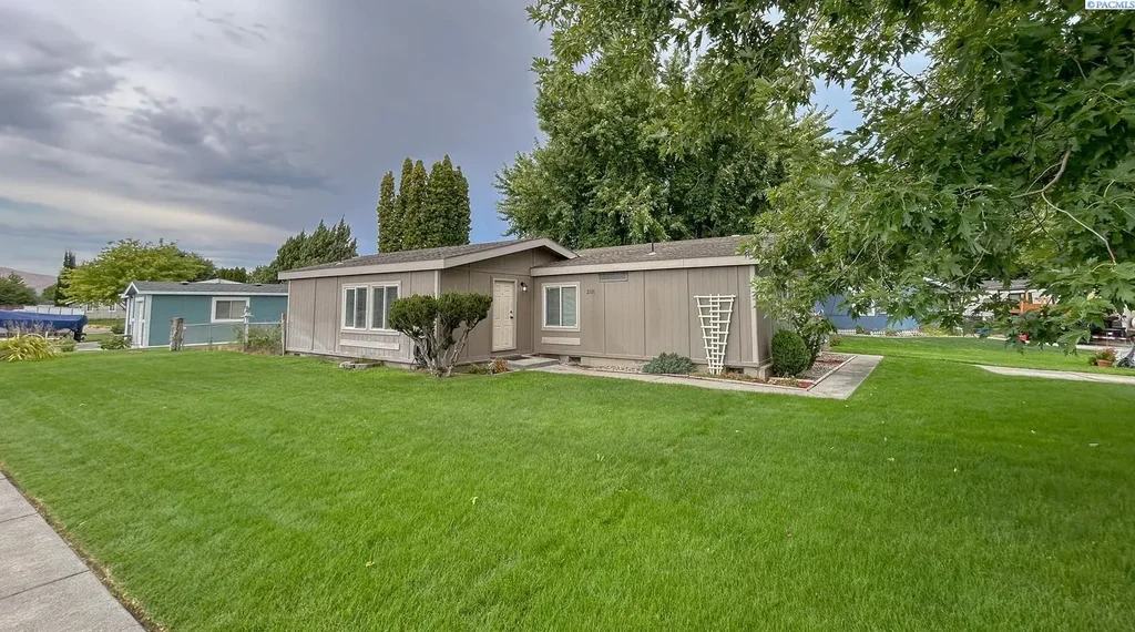 MLS# 286333 Welcoming 3 BD 2 BA home on a corner lot! Step inside to brand new carpet throughout the living areas, with easy-care laminate wood flooring in the kitchen and dining room. The vaulted ceiling enhances the spacious feel of the living room, which features an entertainment wall with built-in shelving and a countertop workspace. The kitchen offers a warm butcher block island and a built-in desk—perfect for staying organized. Enjoy a functional split-bedroom layout with a private primary suite that includes a large walk-in closet and dual-sink vanity. Secondary bedrooms feature fresh paint and share a full bath. Quality touches throughout include wood-wrapped vinyl windows and a brand new HVAC system! Outside, you'll find a fully fenced backyard with underground sprinklers, a gated garden area, two sheds (one for tools, one for storage), and a large shade tree complete with a swing—perfect for relaxing or entertaining. A fantastic find with thoughtful upgrades inside and out!