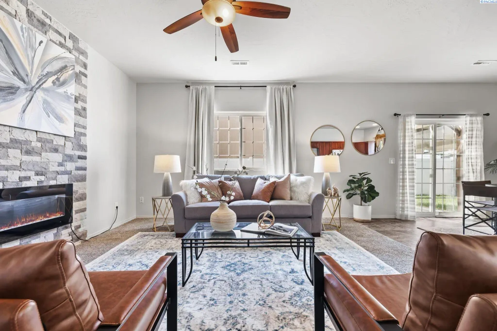 MLS# 286420 Beautifully maintained 1,499 sq. ft. home perfectly situated on a desirable corner lot in the heart of Kennewick.This inviting 3-bedroom, 2 bathroom offers a versatile den, ideal for a home office, playroom, or possible 4th bedroom, and a spacious 2-car garage. Discover fresh, plush new carpetthroughout, complementing the home’s bright and open layout. The recently updated backyard landscaping creates a low-maintenance outdoor. Withmeticulously maintained interiors and thoughtfully designed this home is move-in ready and built for effortless living. Located centrally in Kennewick, you’ll enjoy easy access to shopping, dining, schools, and major highways.Schedule your private tour today!