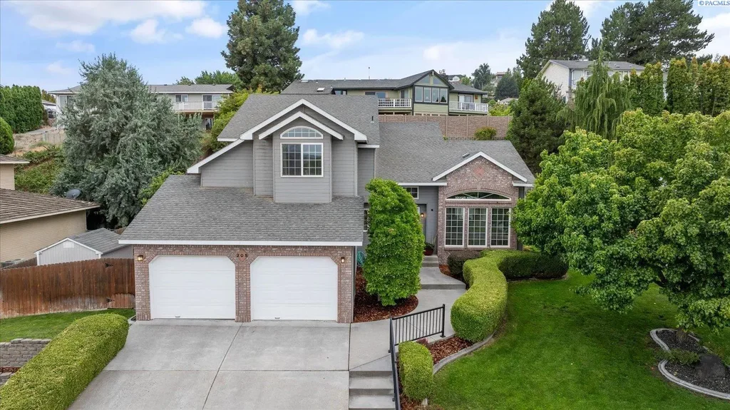 MLS# 286463 Welcome to this beautifully updated 2,547 sq. ft. home in desirable South Richland. Step inside to an impressive open staircase, inviting living room, and formal dining area. The spacious kitchen opens to a cozy family room with a fireplace, and provides seamless access to your private backyard retreat - complete with covered patio, tiered gardens, and multiple flexible outdoor living spaces. Fresh interior paint throughout gives the home a crisp, modern feel. Upstairs, you'll find three bedrooms, including a luxurious primary suite that features a full tile walk-in shower, oversized walk-in closet, and your own private deck with river views - recently renovated with 50-year composite decking. Additional highlights include a Nanotech treated roof with 4-year transferable warranty, a large two-car garage, and a dedicated off-street parking space at street level. This home is a rare blend of comfort, elegance, and outdoor living - don't miss it!