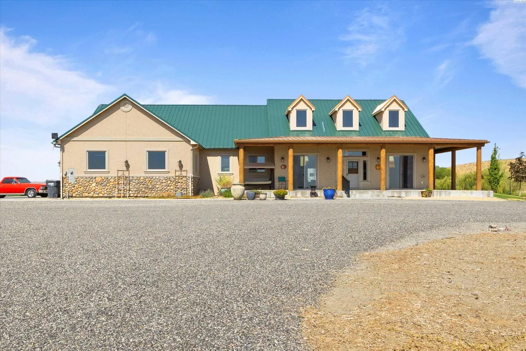 MLS# 286524 This beautiful 2,860 sq ft home sits on 9.22 acres, fully enclosed with classic white vinyl fencing, and offers breathtaking territorial and mountain views. Built in 2016, the home features an open-concept layout with tile floors, a cozy fireplace, and large windows that flood the space with natural light. The gourmet kitchen boasts granite countertops, stainless steel appliances, and a spacious island—perfect for entertaining. The primary suite includes a luxurious en-suite bath with a soaking tub and walk-in shower. Step outside to enjoy a covered patio, ideal for relaxing or watching the sunset over your acreage. Ample space for horses, livestock, gardens, or additional outbuildings, with room to make it your own. Located in the desirable West Richland area, this property combines country living with easy access to local amenities.