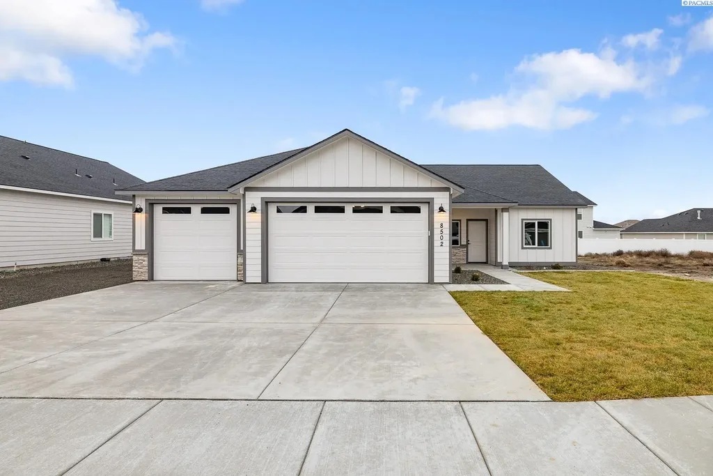 MLS# 286701 Welcome to this stunning new construction home featuring over 1,600 square feet of thoughtfully designed living space! 8502 Ashen Drive in Seven Sisters Pasco has a spacious, modern layout & boasts 3 bedrooms and 2 bathrooms, offering ample room for comfort and functionality. The property comes with an impressive extended 3-car garage that’s been stretched by 4 feet for a whopping 832sft providing plenty of extra storage or workspace. Additionally, the garage includes a convenient door to the yard for easy access. Inside, you’ll find elegant stained wood cabinets that beautifully complement the quartz countertops in the kitchen, creating a perfect blend of style and durability. The open concept living area is ideal for entertaining, and large windows allow natural light to fill the space. Don't miss your chance to call this one home. (Some photos contain virtual staging.)
