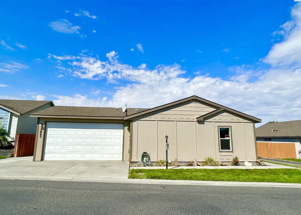 MLS# 286882 Nestled in the heart of Richland, this well-maintained manufactured home offers both comfort and convenience. Located in a vibrant neighborhood with easy access to shopping, dining, and major amenities, residents also enjoy use of a welcoming community clubhouse. Situated on a 5,040 sq ft lot, the home features a two-car garage and a thoughtfully designed floor plan. Inside, you’ll find a spacious primary suite and an open-concept living and dining area, perfect for everyday living and entertaining. Home is being sold as-is, with brand-new flooring just installed. Seller is also offering $5,000 toward bathroom/shower improvements. Don’t miss this opportunity to own a charming home in a desirable Richland location!