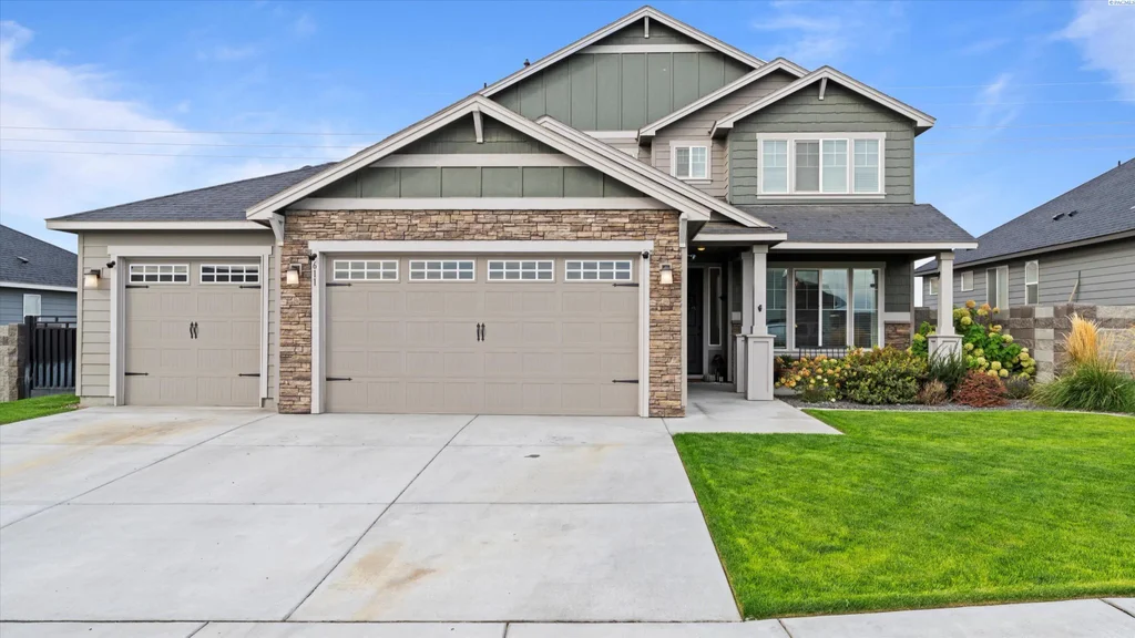 MLS# 287960 Gorgeous 2-story home in excellent condition offering 4 bedrooms, 2.5 baths, and a 3-car garage. Inside you’ll find stunning LVP flooring, a cozy fireplace in the great room, and an open kitchen with quartz countertops, painted cabinetry, and a full tile backsplash. All 4 bedrooms are upstairs, including a spacious primary suite with walk-in closet. A den on the main level provides flexible space for an office or playroom. Thoughtful upgrades include a hidden doggy door with cabinet locks, 220V outlet in the garage, Blink camera system with on-site hard drive, and a propane fire pit with tank. The backyard is beautifully set up with ground lighting along the pillars, string lights that stay, raised garden boxes each on timers, and a chicken coop with irrigation, automatic waterer, and winter heat lamp. Complete with block wall fencing, double gates, and located in a desirable West Richland neighborhood close to new amenities—this home is the perfect blend of comfort, style, and function!