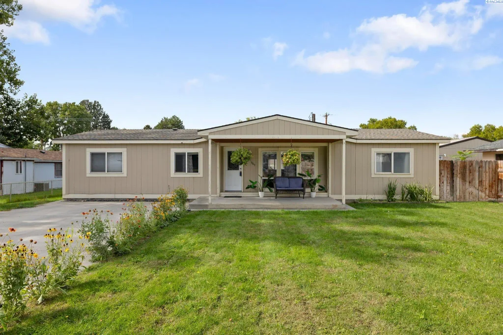 MLS# 287962 Welcome to this charming 3-bedroom, 2.5 bath home nestled in a quiet West Richland neighborhood. From the moment you arrive, you’ll notice the inviting curb appeal with a flower-lined driveway and a covered front porch that's perfect for enjoying your morning coffee or winding down in the evening.Inside, the open great room design features vaulted ceilings and laminate wood flooring, creating a spacious and connected feel. The living room flows into a formal dining area and a versatile flex space, while the kitchen stands out with granite-tile counters, a coordinating backsplash, and durable tile floors. The split-bedroom layout provides privacy, with the primary suite offering a dual-sink vanity and a generous walk-in closet. Step outside to a fully fenced backyard on a large lot, complete with outdoor RV parking and a detached 1-car garage that doubles as a shop with a workspace and half bath. This versatile area includes a roll-up garage door, making it perfect for storage, projects, gardening, or even potential ADU conversion with the right updates. This home offers the perfect blend of comfort, functionality, and future possibilities all in a sought-after West Richland location.