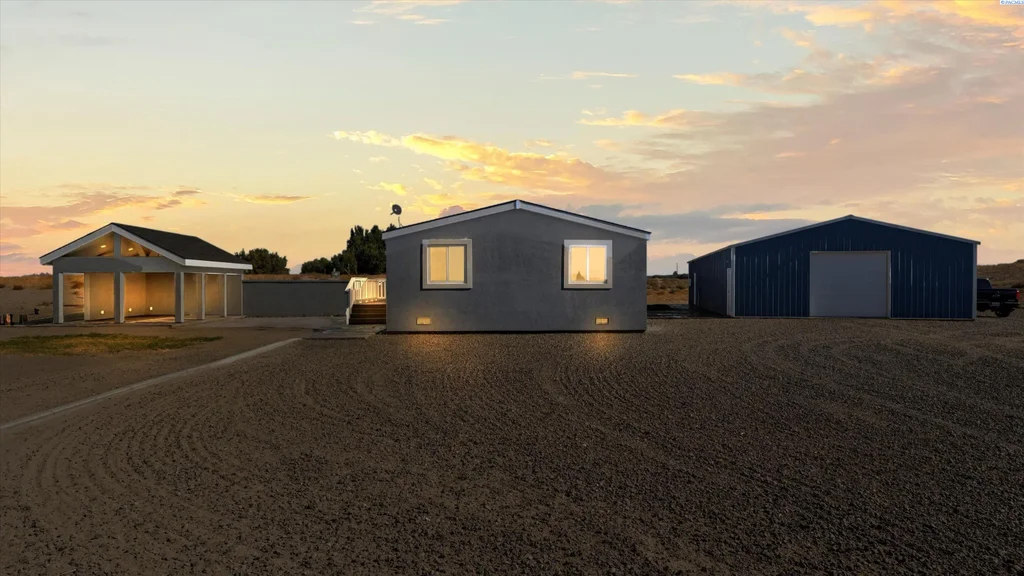 MLS# 288079 Experience the perfect balance of comfort, functionality, and privacy with this exceptional property set on over 10 acres of peaceful countryside. The main home features vaulted ceilings, new luxury vinyl plank flooring, and updated windows that fill the open space with natural light. The kitchen boasts granite countertops, modern cabinetry, new light fixtures, and stainless steel appliances, creating a stylish and welcoming atmosphere.A true highlight of the property is the 30x60 shop, which includes a fully finished apartment—complete with new cabinets, granite countertops, and new tile flooring. This versatile space is perfect for multi-generational living, guest accommodations, or potential rental income.Enjoy outdoor living under the large stucco pergola, ideal for entertaining or relaxing while taking in the peaceful surroundings. Located on a private access road just minutes from Ice Harbor Dam and Charbonneau Park, this property offers the tranquility of country living with convenient access to peaceful recreation.