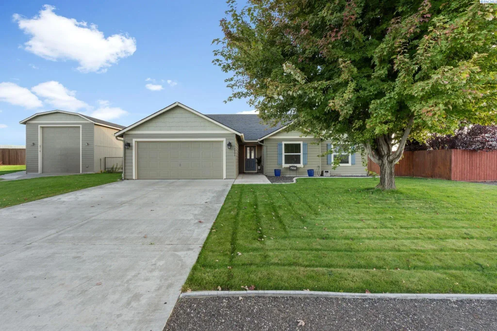 MLS# 288186 Nestled on a peaceful cul-de-sac with no neighbors behind, this well-maintained 3-bedroom, 2-bathroom home offers 1,816 square feet of open, airy living space. With a spacious and seamless flow between the kitchen, dining, and living areas, this home is perfect for both everyday living and entertaining. A cozy gas fireplace creates a warm, inviting atmosphere in the living room, while a covered patio just off the dining area offers a serene outdoor retreat. This home also features a versatile den, ideal for a home office, playroom, or additional guest space. The generous .29-acre lot provides plenty of room for outdoor activities, complemented by a fully finished shop with an RV bay door and an attached shed—perfect for extra storage, projects, or hobbies. Seller is offering $4,000 to use towards new carpets. Call today for a private showing!