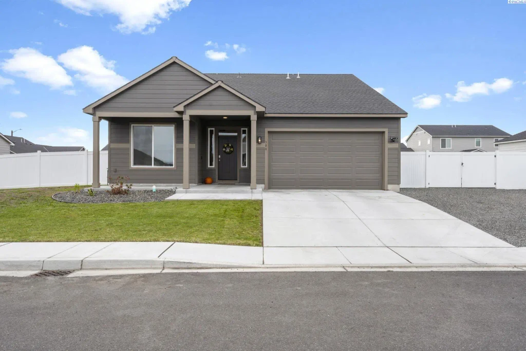 Welcome to this like-new build in Grandview Washington! Built in 2023, this 1780 square foot, 4 bedroom, 2 bathroom home offers modern amenities with a homey feel. Step inside and you'll find laminate floors throughout the main hallway and in to the living room, kitchen, bathrooms, and laundry with carpet in each of the bedrooms. The kitchen offers quarts counters, tons of storage, a great pantry and stainless steel appliances. As you enter the primary suite you'll find a large bedroom with a beautiful ensuite, complete with a grand bathtub, separate shower, double vanities, private toilet and great walk in closet. This bright and airy home welcomes you with great natural light flowing from the front all the way through to the back. Added windows in the living room with a great sliding door off the dining giving great access to the backyard. The fully landscaped and fully fenced backyard will give the new buyers privacy and peace when hosting, hanging out, or when the kids or pets are out to play. Schedule a tour to check out this great home!