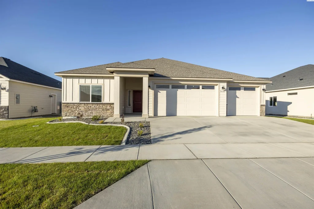 MLS# 288249 Introducing the Brielle Elizabeth floorplan! A beautifully crafted new construction home nestled in South Orchard! This spacious 2,083 sqft floor plan features a thoughtful layout with 3 bedrooms, 2.5 baths, and a generous 3-car garage. As you step inside, you’ll be greeted by an inviting open-concept design that seamlessly connects the great room, kitchen, and dining area. The beautiful LVP flooring flows throughout these spaces, providing both elegance and durability for everyday living. The heart of the home, the kitchen, boasts an under-mount sink and a stunning full tile backsplash, making it a chef's delight. With ample counter space and modern appliances, entertaining guests will be a breeze. Retreat to the luxurious primary suite, where relaxation awaits. The en-suite bathroom features elegant LVP flooring, granite countertops with under mount sinks, and a beautifully designed tile shower, creating a spa-like atmosphere. Two additional bedrooms provide plenty with a well-appointed second bath that ensures comfort and convenience for all.Enjoy the outdoors in your private backyard, offering a serene space for relaxation, play, or gatherings. This home combines modern living with a vibrant neighborhood atmosphere.