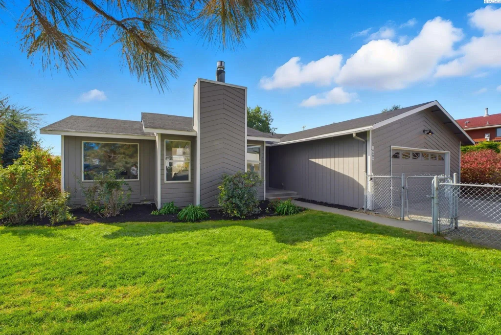Located in desirable Reata, this completely updated 3 bedroom, 2 bath home with an office sits on a huge .37 acre lot with a big fully fenced backyard, rear access, and a large fully powered workshop. Beautifully remodeled, this home features an open layout with a stylish black-accents, wide plank flooring, and designer finishes throughout. The kitchen offers white shaker cabinets, quartz counters, subway tile backsplash, and stainless steel appliances. The bathrooms are fully redone, including a spa-like primary suite, a freestanding soaking tub in the guest bathroom, tiled surround, and matte black fixtures. Step outside your primary bedroom to relax in the private hot tub or enjoy the spacious deck that overlooks the yard. The property includes a two-car garage, fenced yard with mature trees, and convenient rear access for easy parking or future shop entry. This home blends modern style with functionality and space in one of Kennewick’s most sought-after areas.
