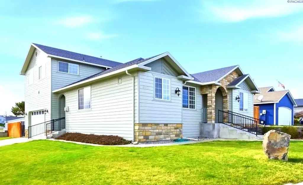 MLS# 290634 Two homes, one address â and one exceptional opportunity. This beautifully finished Kennewick property offers a fully independent ~1,000 sq ft upper suite with private garage entrance alongside a stunning main-level residence, creating immediate income potential or ideal multigenerational living. Corner lot and rental income potential. The main level boasts 9â ceilings, crown moldings, gorgeous and durable Patagonia Rosewood flooring throughout, custom tile work in the kitchen and bathrooms, beautiful fireplace and great storage options. The chefâs kitchen includes stainless-steel appliances, custom black walnut cabinetry with under-cabinet lighting, designer backsplash and granite countertops. The tranquil primary suite leads to the spa-like bathroom with custom tile work, luxury jetted-tub and separate shower and a large walk-in closet. The two roomy guest bedrooms have generous closets. Matching custom tile adorns the guest bathrooms and laundry room, as well. The finished garage offers soaring 14â ceilings, with extra storage racks above it all and a second laundry room. The separate entrance from the garage leads upstairs to the second living suite! This suite has views, a large great-room, kitchen with adjoining coffee bar, dining area, large bedroom, bathroom and walk-in closet. This second suite is fully updated as well, with custom tile, beautiful kitchen cabinets and countertops and luxury LVP flooring - amazing income potential! Upgraded systems and features include custom metalwork for the gate and railings, newer hot water heater, well-maintained high-quality HVAC system and LED lighting throughout the entire property. This home is competitively priced for the amazing features & finishes offered. SPECIAL FEATURES: Income-producing ADU / Second living suite Custom black walnut cabinetry Patagonia Rosewood flooring 14-ft garage ceilings Corner lot Contact your Broker today to schedule a private showing.